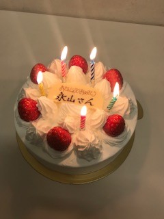 お店の皆さんにケーキを買って頂いて、みんなで食べましたよ(^O^)/何歳になってもお祝いしてもらうと嬉しいです(^○^)