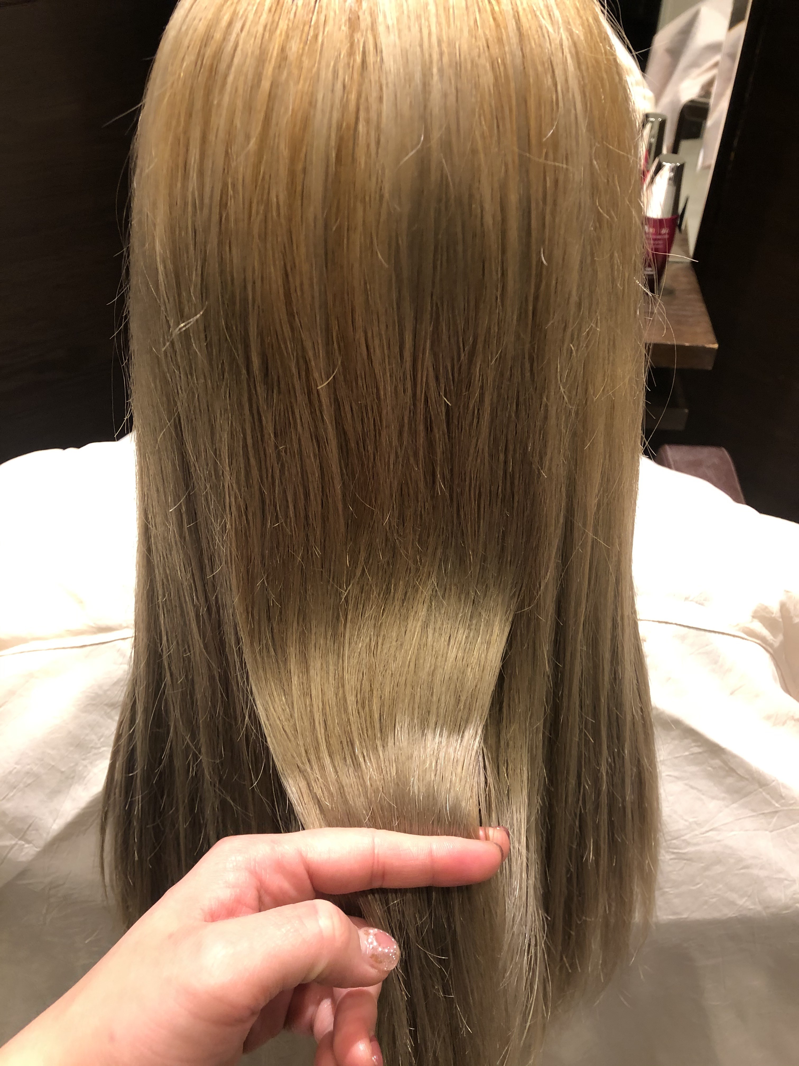こんにちは藤山です! 先日、モデルさんにAujuaのIMMURISEで ダメージ補修の効果を体感してもらいました。 ホームケアのシャンプーも使ってもらってます。 今までのパサパサの髪質と全然違って まとまりと潤いがあると感動してました。 この位のブリーチ毛にも効果大です! 色んなラインがあるので是非体感下さい!